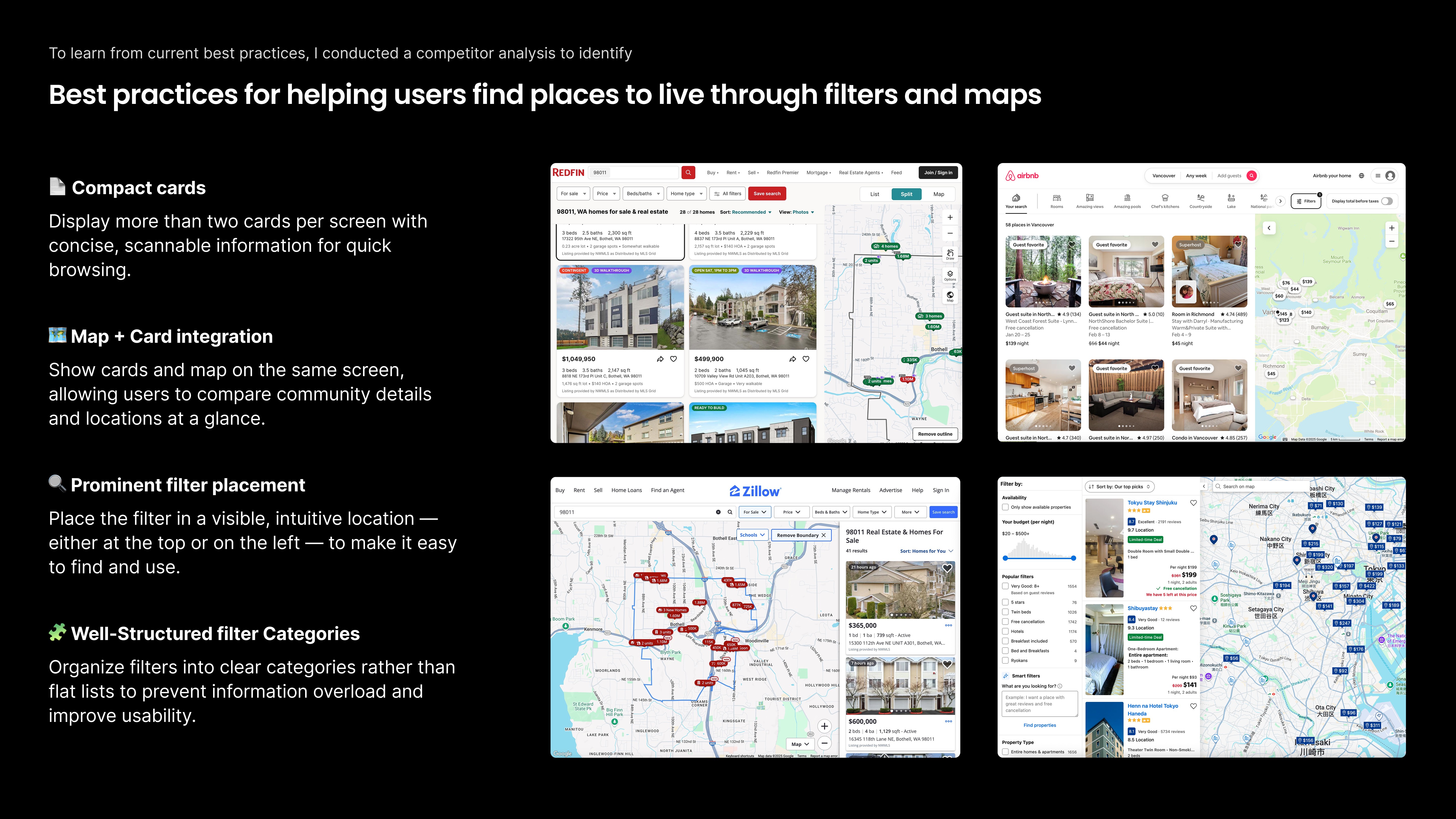 Without a direct competitor, I expanded the lens and analyzed housing, directory, and marketplace platforms to understand how they structure complex search interface.