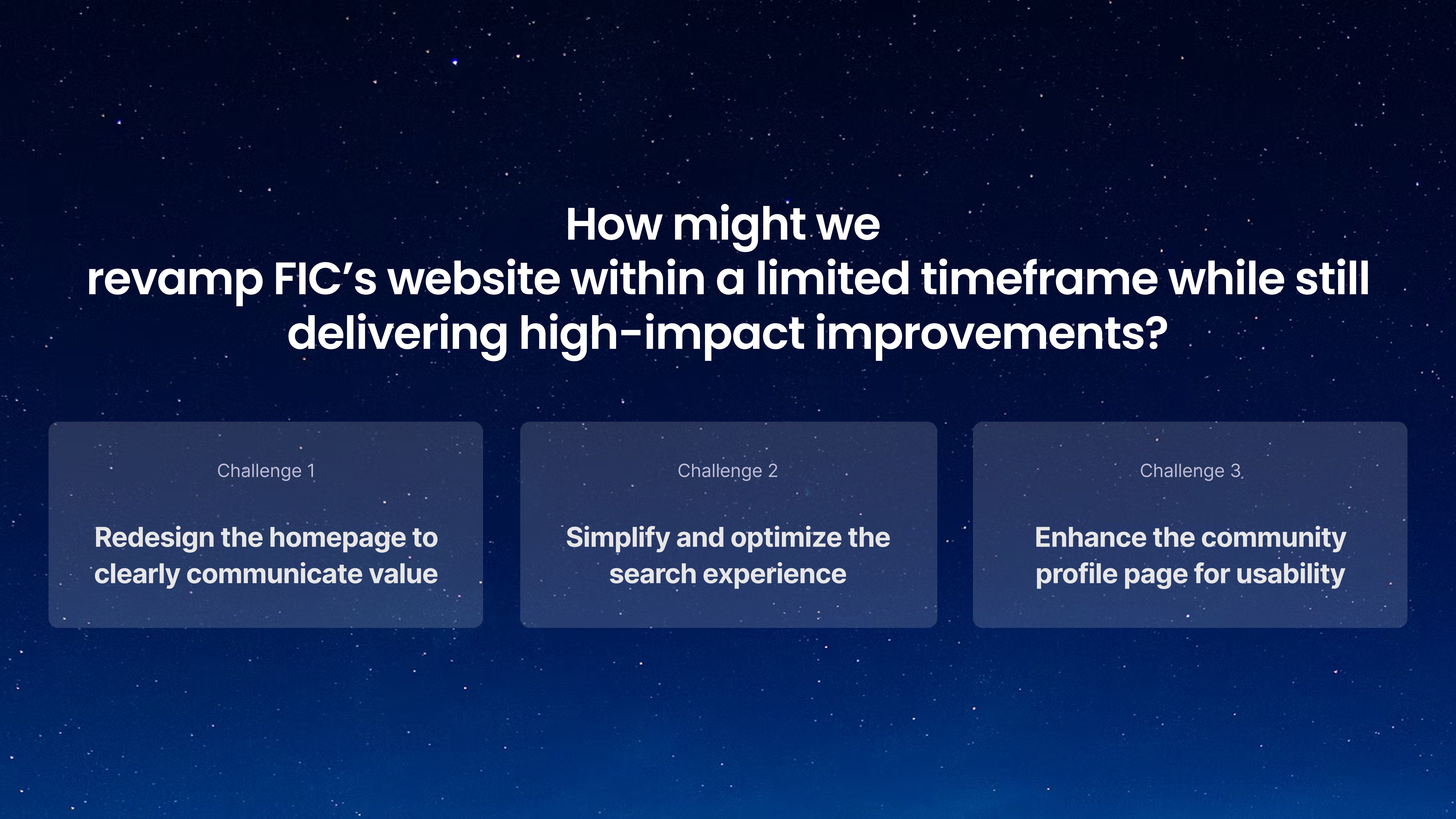 How might we revamp FIC’s core flows within a limited timeline — and deliver real impact?